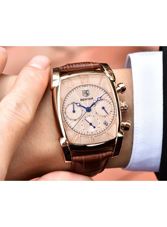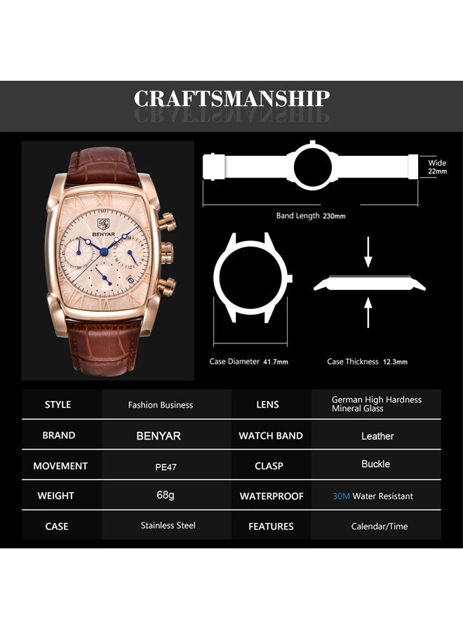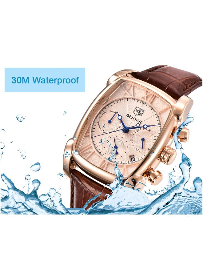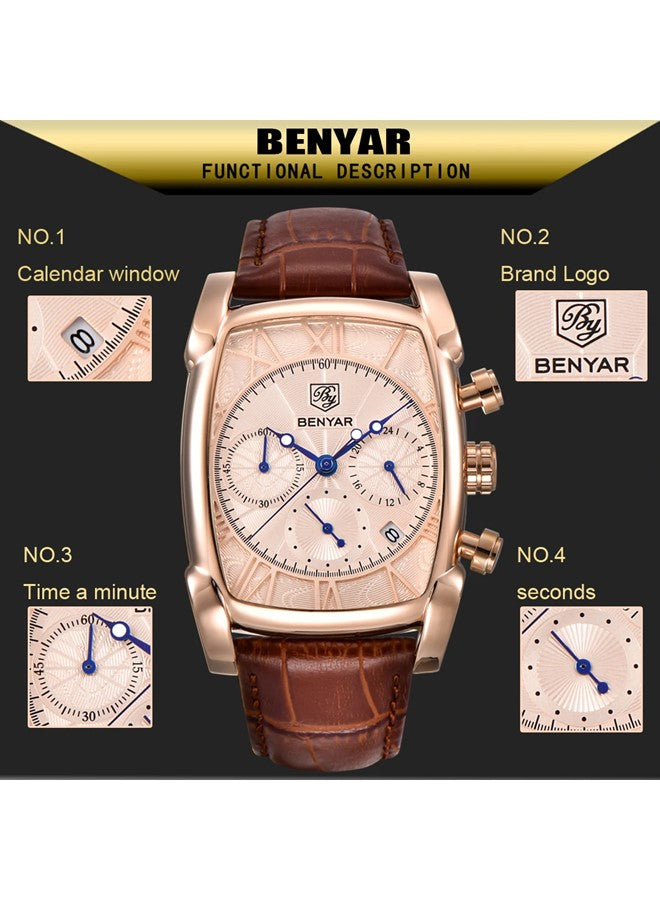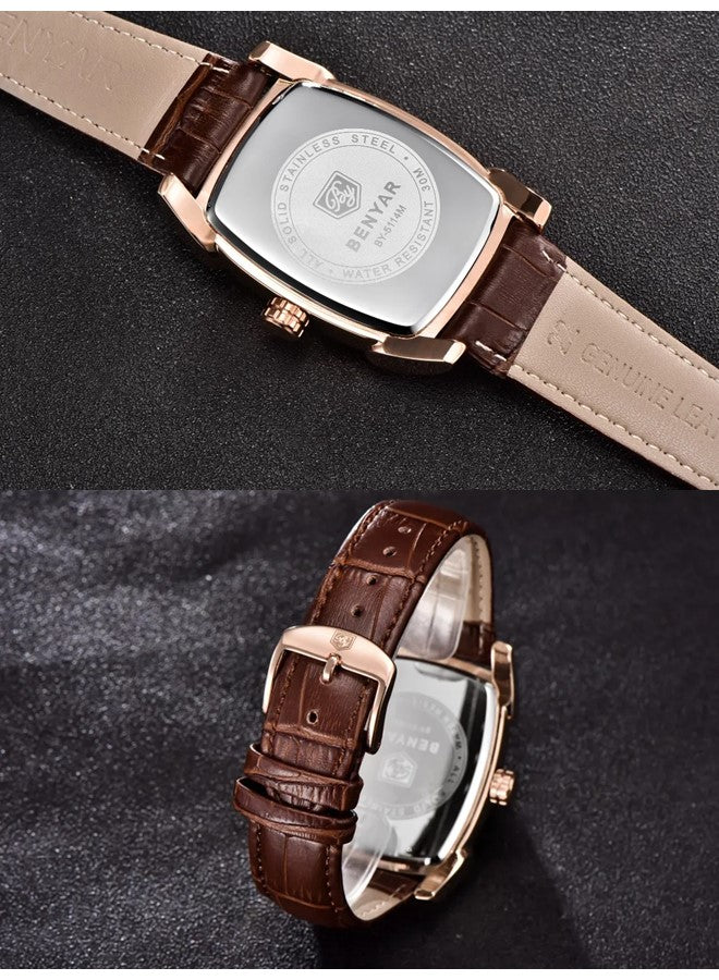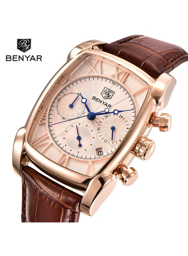 BENYAR Men’s Rectangle Analog Quartz Watch – Leather Strap Waterproof Date Wristwatch-5114