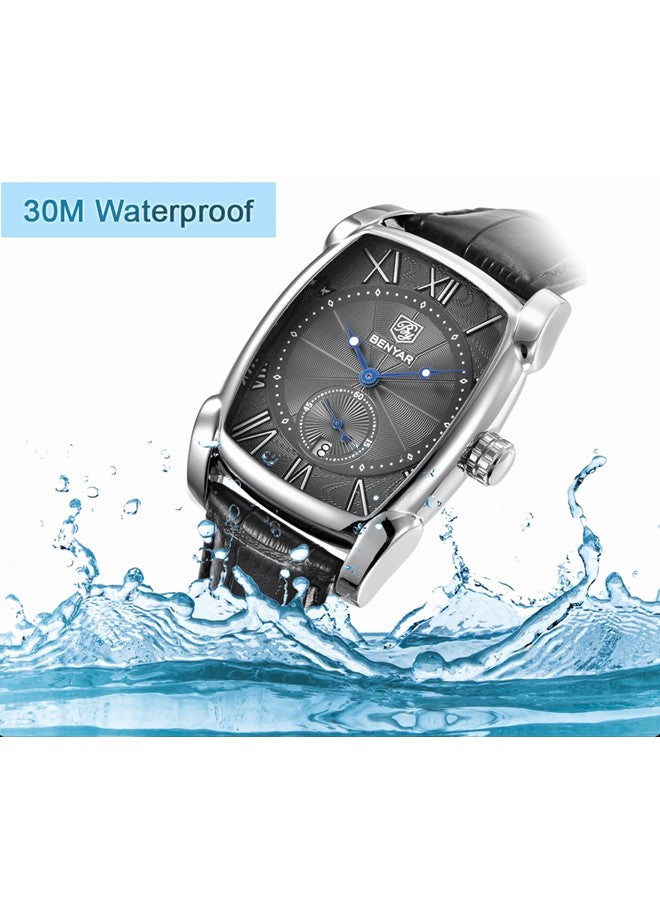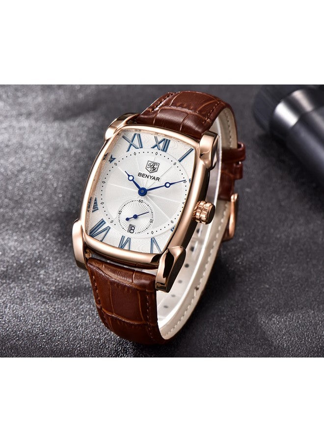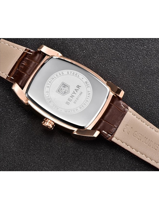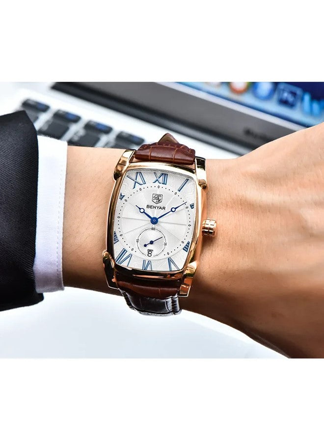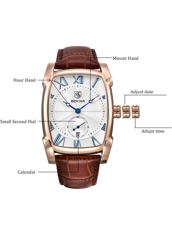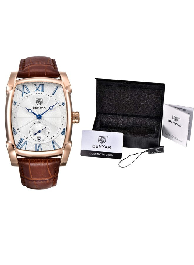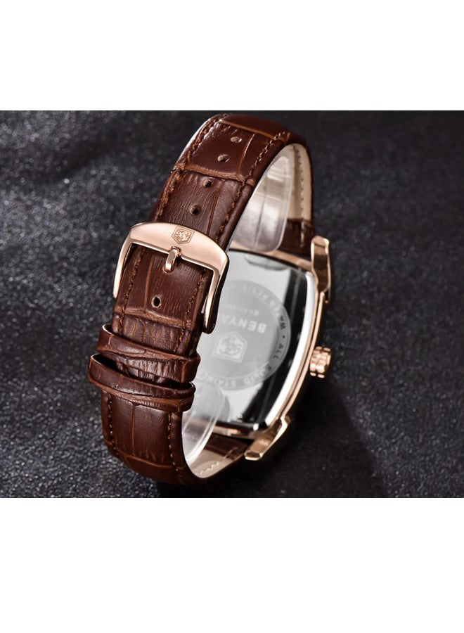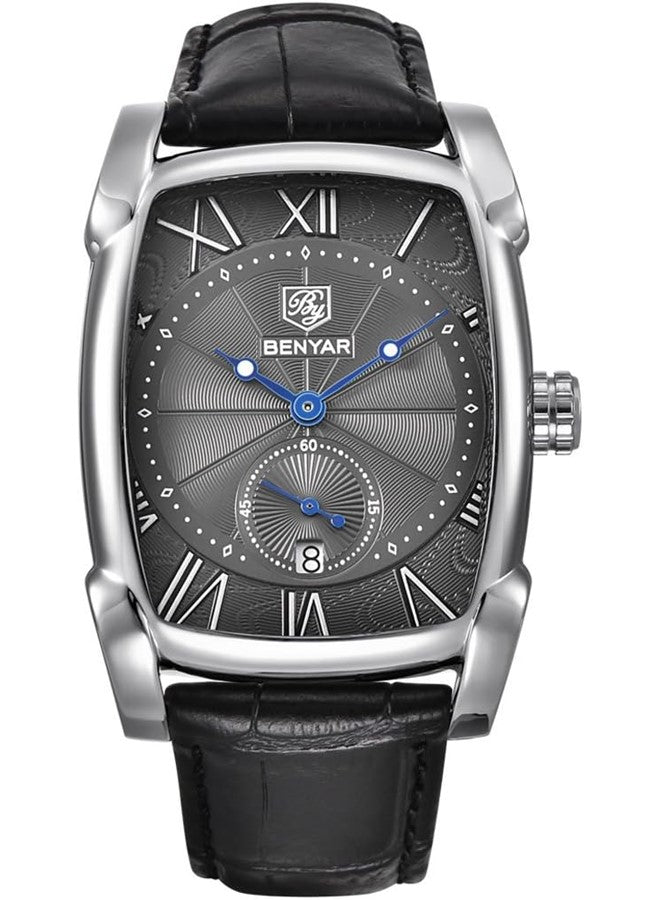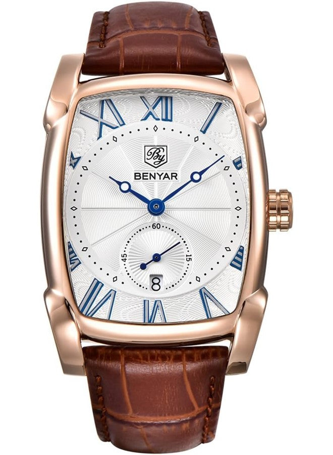 BENYAR Men’s Rectangle Analog Quartz Watch – Leather Strap Waterproof Date Wristwatch-5114