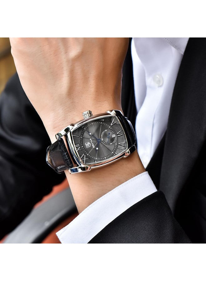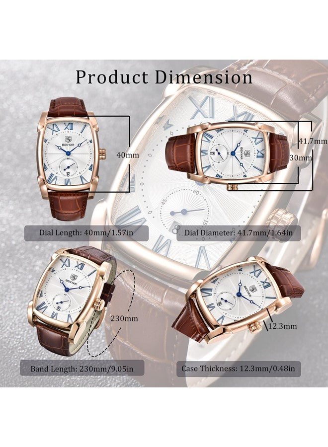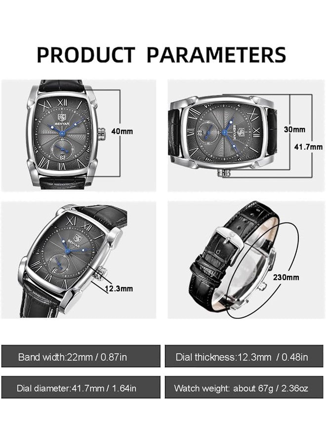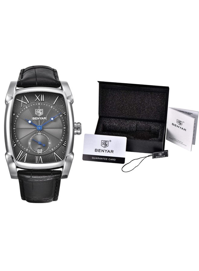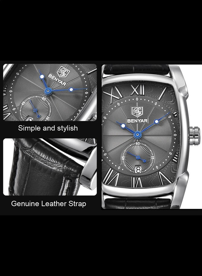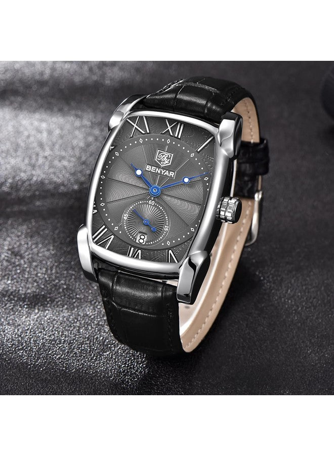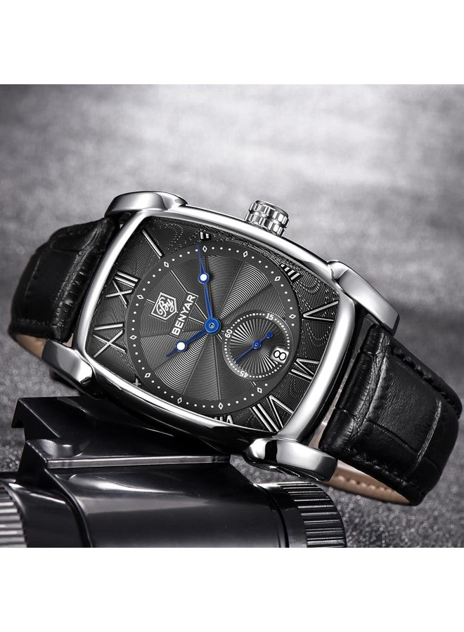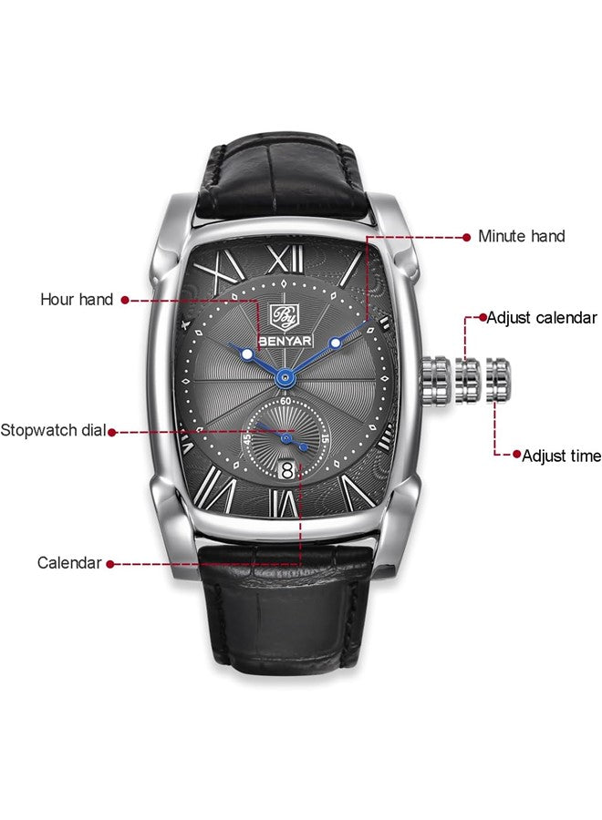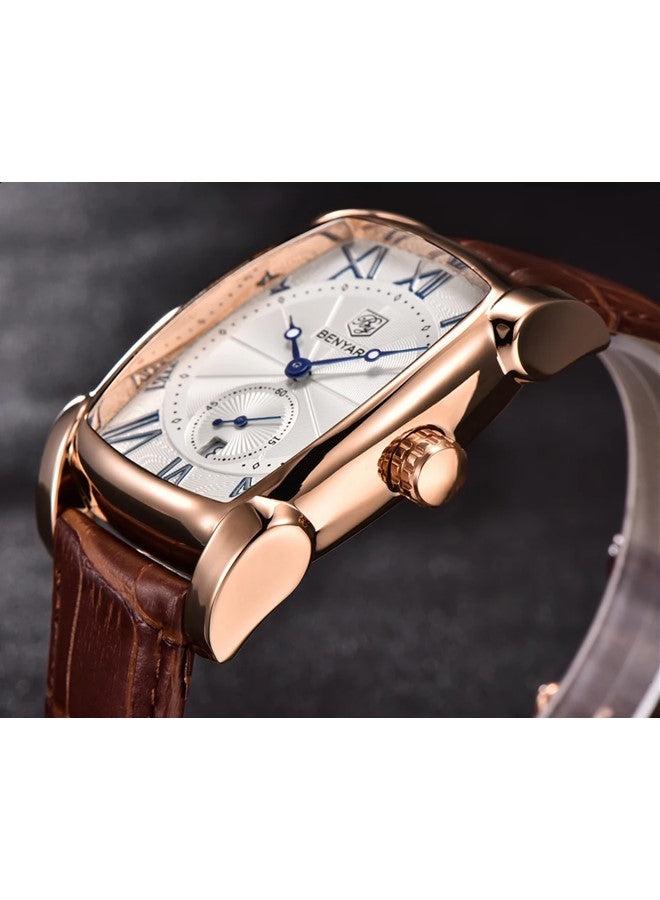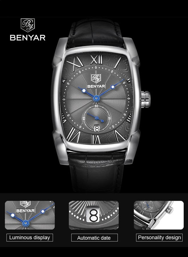 BENYAR Men’s Rectangle Analog Quartz Watch – Leather Strap Waterproof Date Wristwatch-5114