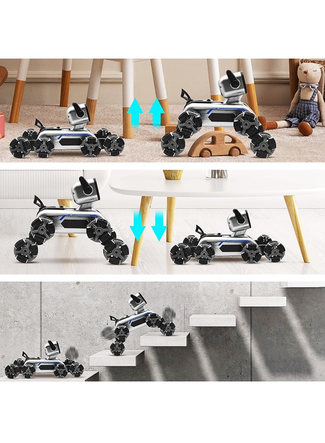 Engineered with 8-wheel drive and flexible swing arms, it conquers multiple terrains while performing flips, spins, crawling, and double-sided drifts. Unlike ordinary RC cars, this one climbs stairs, lights up in sync with music, and even transforms into lifelike postures—capturing the feel of a playful robot dog.