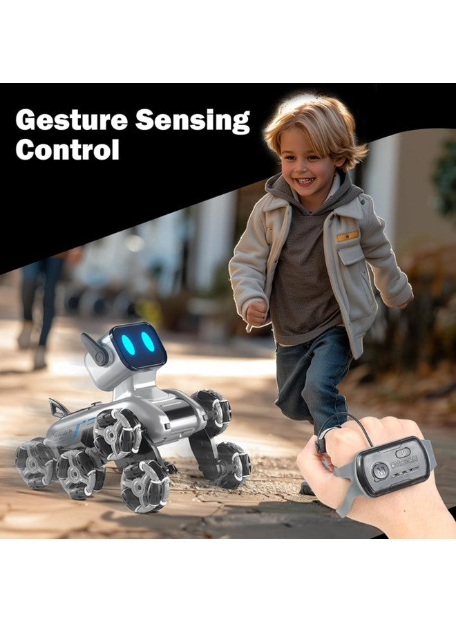 We Happy, Remote Control Robot Dog Toys, 8WD Gesture Sensing Stunt RC Car, Music & Lights, Gray, Gift for Kids 6+ is a thrilling fusion of technology and creativity, built to deliver action, learning, and fun in one compact design. With a bold robotic dog shape and dynamic eight-wheel drive, it offers not just movement—but presence.