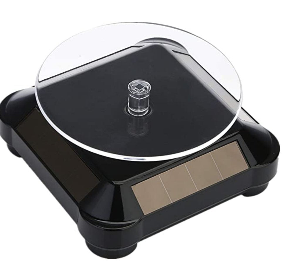 Solar or battery can drive the display turntable. 4 built-in solar panels power it. One of the best things about this Solar or Battery Powered Turntable is that you can rotate this display turntable 360 degrees.